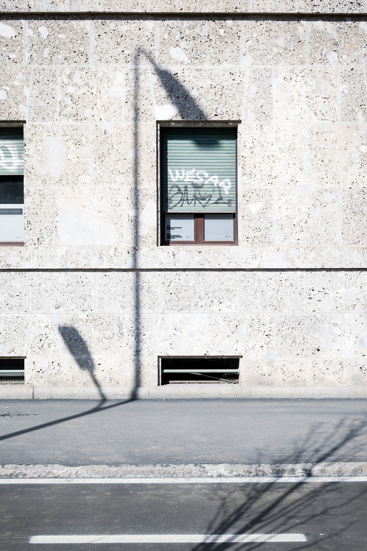 I am attracted by the graphics of things; signs, lines and shapes that I often look for with my gaze while I photograph. In this work I played with lines and geometries. Lines that delimit spaces, cut them, create them. Looking up, in the sky of Milan, you can see lines formed by the wires of electricity, trams and buses; these lines intersect forming triangles, rectangles, squares or they travel parallel, delimit spaces and cut them. Following them with your gaze they seem to take you around the city like signs on a map. I worked on abstraction and accentuated the graphic aspect with black and white. Dark lines that stand out against the white sky, like drawings on a sheet of paper. I liked the idea of a stylised representation of the city, with an essential aesthetic where, however, the urban element is still recognisable. In the gallery there are 5 compositions made up of 4 images and 9 single images